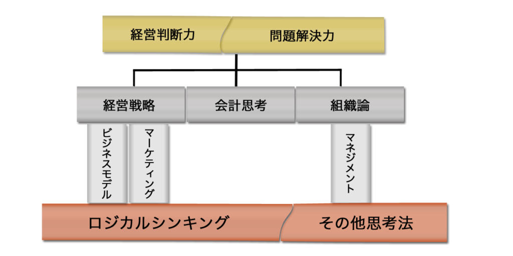 その上に、会計・マーケティング・経営戦略等の「経営知識」が乗っています。